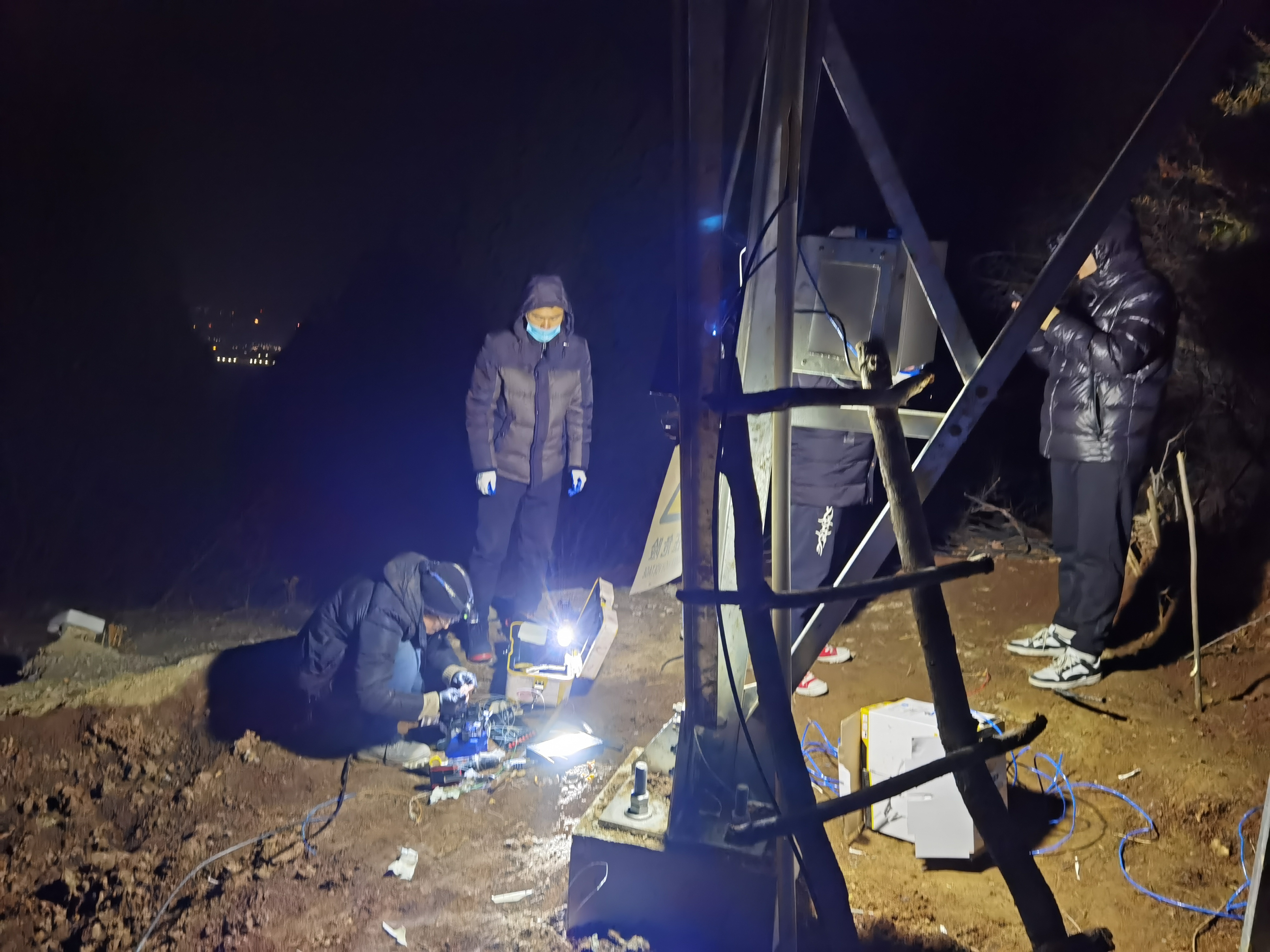 就這樣,閆部長帶領(lǐng)趙宇豪和郭冬冬以及年輕的團隊,沖在施工一線,僅僅用了15天的時間,便使鐵塔樹立在了山頂。零下十幾度的嚴寒,不分晝夜趕進度,最終僅僅用時20天便出色完成了“智慧秦?!敝悄苌诒ㄔO(shè)工作。